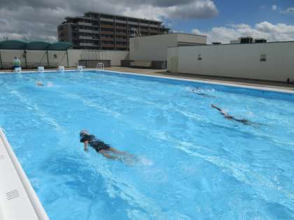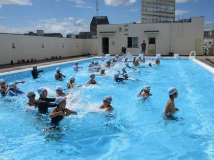 (写真:特別練習、プール開放高学年)