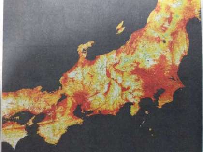 (写真:JAXA提供の地球観測衛星から見た8/1の日本列島の地表温度)赤く映っているところは、40度を超える地表温度だそうです。