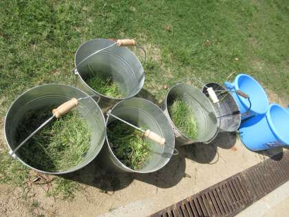 校庭の芝生の雑草取り