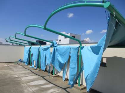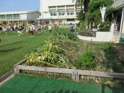 本校でも、強風により屋上プールの日よけが風で飛ばされ、管理作業員さんが手塩に育てたヒマワリなどの草花も倒れてしまいました。