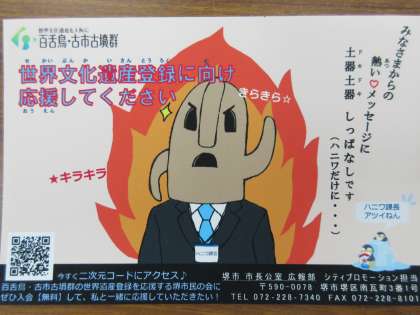 以前に東成郵便局様よりいただいたかもめーるを使ってご当地キャラに暑中お見舞いを出したところかなりのご返事をいただいています。またまた、堺市のはにわ課長と吉野のピンクルちゃんよりお返事をいただきました。