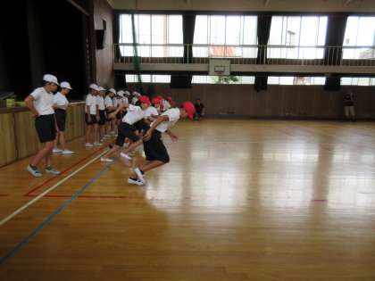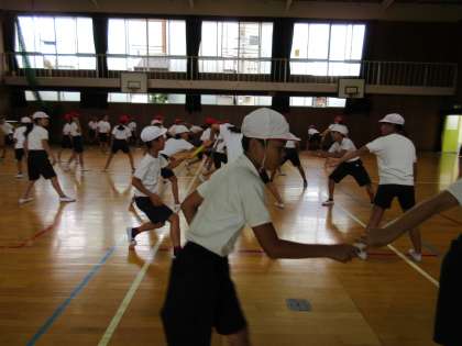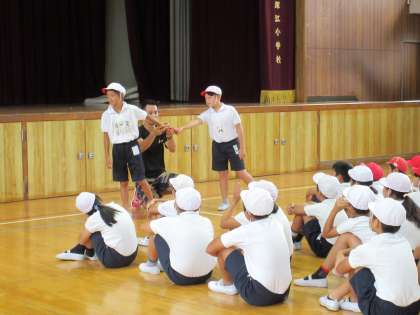 5年生に続いて、6年生が荒川大輔先生の指導を受けました。元気一杯、荒川先生の作ったメニューをこなしていきました。バトンリレーのコツをつかんだようです。