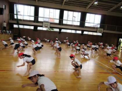 今日はあいにくの雨ですが、体育館で3・4年生が合同で運動会の団体演技「そーらん」の練習をおこないました。体育館が児童でいっぱいになり、熱気のこもった練習風景ですが、始めたばかりとは思えないほどよくできた演技です。本番が楽しみです。