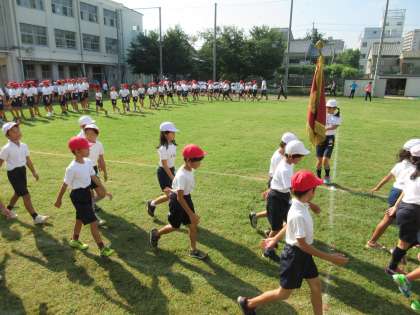 初めての運動会の全体練習をおこないました。今日は開会式の練習をおこないました。