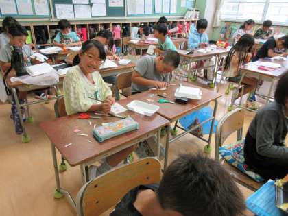 発泡スチロールを利用して、「書写はんこ」作りをおこなっています。