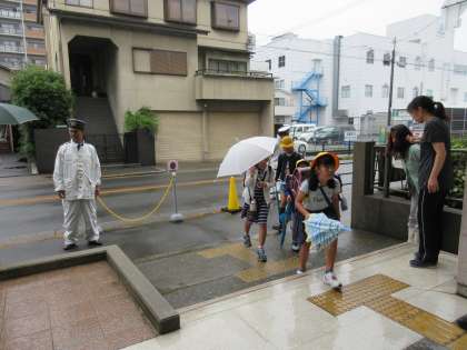 秋の交通安全週間が始まりました。今日は東成警察署の警察官に登校時の児童の安全を見守っていただきました。児童はいつもどおり元気よくあいさつをして登校しました。
