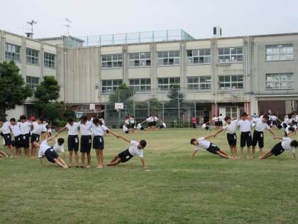雨の降る前に5・6年が練習を始めました。以前のような大きなピラミッドは児童の安全確保のためできなくなりましたが、それだけに乱れの無いそろった演技の完成度を求めています。