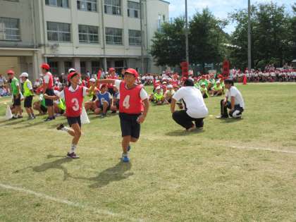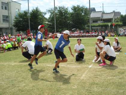 紅白それぞれにバトンに気持ちを込めてのリレーです。元陸上日本代表荒川大輔さん直伝のバトンパスは素晴らしかったです。
