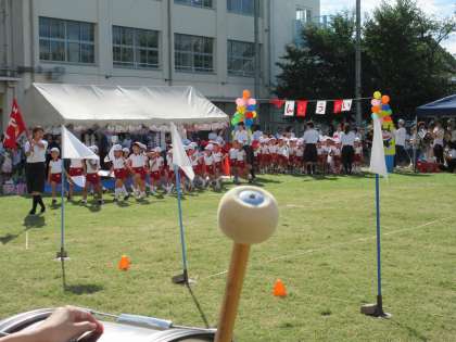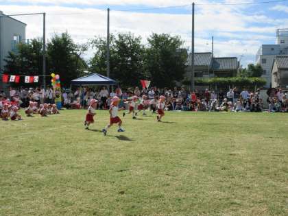 心配された台風の影響もなく、晴天の下、深江幼稚園の運動会が開催されました。皆さんいっしょうけんめい頑張っていました。