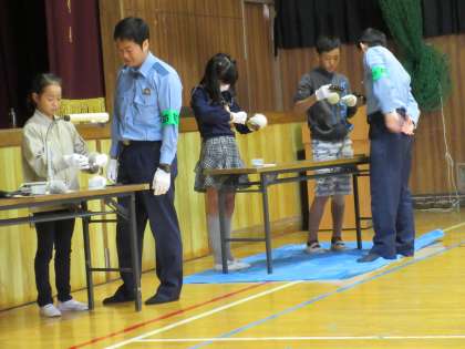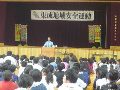 大阪府警本部、東成警察署、東成区役所、東成防犯協会、防犯協会深江支部、地域見守り隊のご協力を得て、地域安全大会が深江小学校で開催されました。