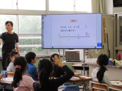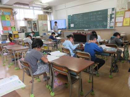3年から6年の「算数」と「国語」はクラスを分割して更に少人数による学習を進めています。10数名のクラスにによる3年生の「算数」の授業です。先生のお話もよくわかるようです。