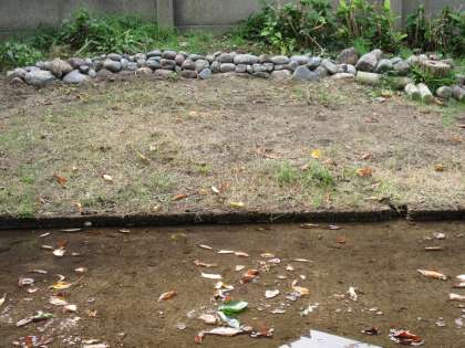 学習園の池を整備するにあたっては、本校の管理作業員と職員が池の底にある石を撤去しました。池から大量に出てきた石は花壇の石垣として活用されています。そのあと、大量の土を入れることで「菅田」完成しました。目に見えないことですが、大変な作業をありがとうございました。