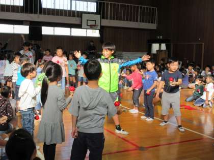 毎週木曜日の始業時前は縦割り班によるふれあい集会です。今日は「けん玉」に全校児童で取り組みました。「けん玉」は昔遊びとしてあったものですが、近年は子どもの集中力がつくことで見直されています。