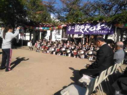 秋晴れの本日、深江歴史文化まつりオープニングセレモニーが、南深江公園で開催されました。ご来賓をはじめたくさんの皆様が見守られる中、深江小学校5年生の2人が開会宣言をおこないました。続いて深江幼稚園児による鼓笛隊の演奏、東陽中学校吹奏楽部の演奏があり、オープニングセレモニーを一層華やかにしました。