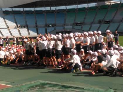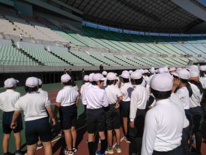 とても良いお天気のもと、6年生は長居の「ヤンマースタジアム」でのスポーツ交歓会に出かけました。