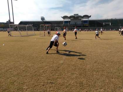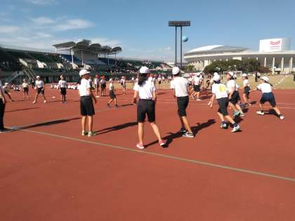 お昼からは学校ごとにチームに分かれて、区内の小学校とサッカーとドッジボールの試合を行っています。それぞれのチームワークを競い楽しむ交流会ですが、勝敗もちょっと気になります。