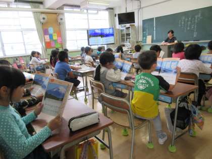 2階の3年生の教室から美しい歌声が響いてきました。〜あたまを雲の上にだし〜ふじは日本一の山〜子どもの頃に戻ったように気持ちになりました。