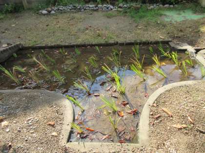 先月、学習園にできた菅田の様子です。1か月たちました。あまり変わったようには見えませんが、しっかりと新芽が出てきています。これからこの新芽が大きくなっていきます。