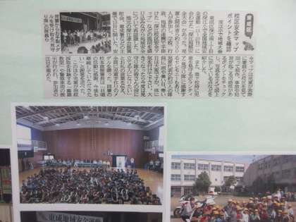 10月に本校で行われた「東成区安全大会」の様子が新聞に掲載されたため、東成警察よりその記事と写真をいただきました。校長室前に掲示していますので、ご覧ください。