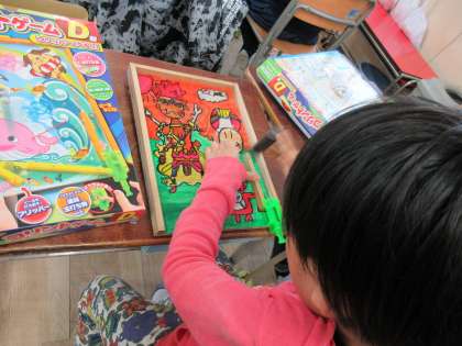 めいめいが、絵柄を考えて作ったオリジナルのコリントゲーム(パチンコ台)を作っています。