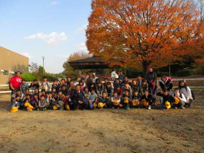 本日お世話になった乗馬苑の皆様と2頭の馬(チャコ号、まる号)と一緒に紅葉をバックに記念撮影をおこないました。4年生にとって、とても充実した社会見学でした。