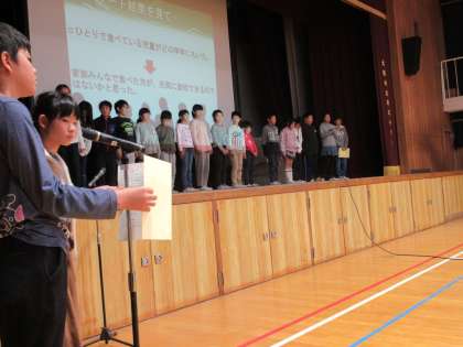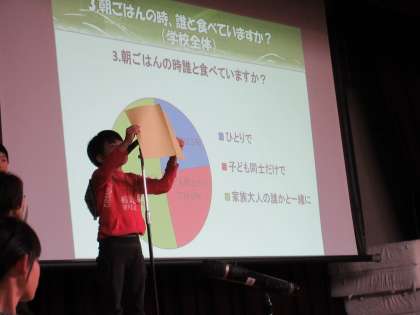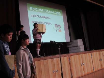 給食保健委員会より、本校の児童アンケート調査を基に「朝ごはん」についての報告がありました。