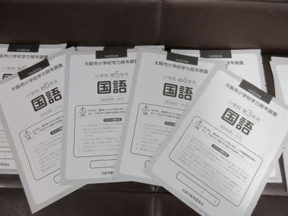 本日、大阪市全校で実施する学力経年調査を3〜6学年でおこなっています。教科は1時間目より国語、社会、算数、理科の順で4時間目まで実施し、給食を挟んで児童質問紙調査があります。