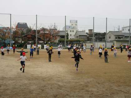 12月は全校で早朝なわとび集会を行っています。今日は低学年児童が全員で行いました。