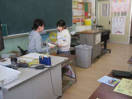 担任から一人ひとりに声をかけながら「通知表」が手渡されています。成績を誰かと比べたり、勝ったか負けたかではありません。ご家庭では子どもさんの良かったところをほめて伸ばしていただきたいと思います。また、3学期には頑張った成果が現れるように励ましていただければと思います。(学校長)