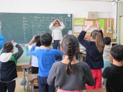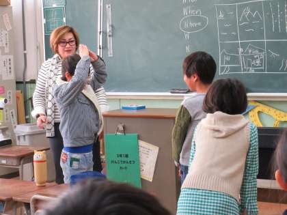 ネイティブスピーカーのMaria先生の授業です。「Where are you going?」「I’m going to 〜」を練習しています。初めてなので少し戸惑っていましたが、徐々に慣れてきた3年生たちです。