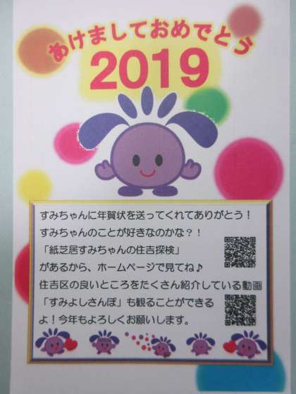 近畿地方のご当地キャラ「すみちゃん」から年賀状が届きました。