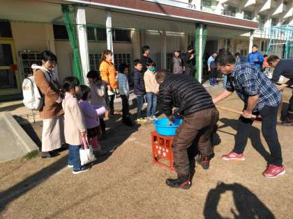 PTAと地域の皆様のご協力による「もちつき」大会がもようされました。暖かい良いお天気に恵まれ、多くの児童、保護者のご参加がありました。つきたてのお餅は最高に美味しかったですね。