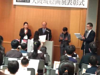 歴史と伝統のある「大阪城絵画展」の表彰式が大阪城天守閣の会議室でおこなわれました。栄えある表彰式では大阪城天守閣の北川央館長から本校の受賞者に賞状が手渡しされました。
