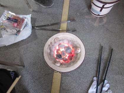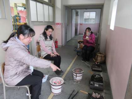 3年生が学年集会を行いました。保護者の皆さまが、火起こしから火種づくりをおこなっていただきました。寒い中ありがとうございました。「七輪は昔の生活に欠かせない道具でしたが、現在は災害時などで電気ガスなどのライフラインが止まった時の道具としても活用されています。しかし、直接火を扱うので安全に注意しましょう。」と校長先生からお話がありました。