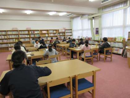 3年1組が図書館学習をおこなっています。震災関連の本を読んでいる児童が多いのに驚かされました。このように防災・減災学習の場としても図書館は活用されています。