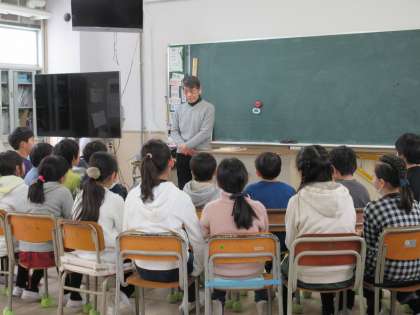 いつもお世話になっているパンジーお話会の皆様に読み聞かせを行っていただきました。地獄の閻魔様の前に連れて行かれる3悪人の話や、白楽天の話をとてもリアルに聞かせていただきました。このような活動を通して児童の感性や創造力を育んでいきたいと思います。