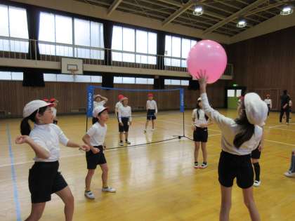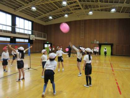 1月にふうせんバレーボール普及会の石井会長様からご指導を受けた3年生がふうせんバレーボールをおこないました。本日の特別講師は学校長です。ふうせんバレーの目的である「思いやりの気持ち」や「相手の立場に立ってパスを出す」ことなど、全員が参加ができるようにお話がありました。