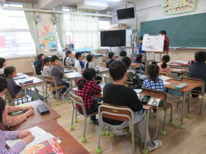 本校では毎週、火・水・金曜日の始業時前の15分間を読書タイムとして、読書に取り組んでいます。今日は2年生の教室で高学年の児童が読み聞かせを行ってくれています。