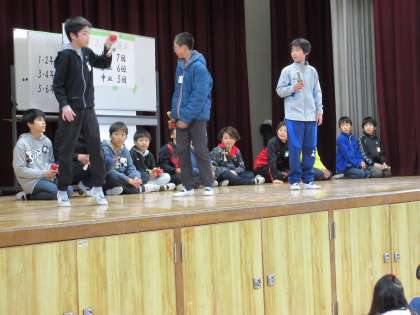 達人と呼ばれるけん玉の上手な児童によるデモンストレーションで、スタートしました。次に学年ごとの課題をこなしていく学年リレーで盛り上がります。