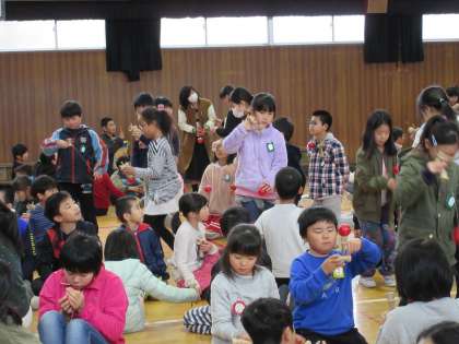 大会終了後、学校長より「みんなで応援して助け合って仲間づくりができたと思います。けん玉の技は難しくて苦手な人もいると思いますが、誰かと比べるのではなく一つ一つ自分なりの技に挑戦していきましょう。けん玉に限らず、勉強もスポーツも同じです。苦手なことをそのままにしておくと苦手なままですが、一つできると苦手ではなくなります。これからの学習に活かしましょう。」とあいさつがありました。