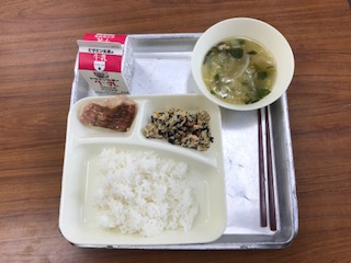 献立:赤魚のレモンじょうゆかけ、うすくず汁、高野どうふのいり煮、ごはん、牛乳