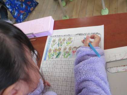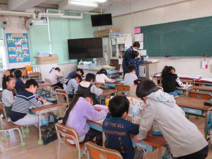 もうすぐ3学期も終わりますが、1年生の思い出日記を書いています。プール水泳やなわとび運動など、いろいろなことが出来るようになった1年生たちです。何枚も思い出日記を書いていました。