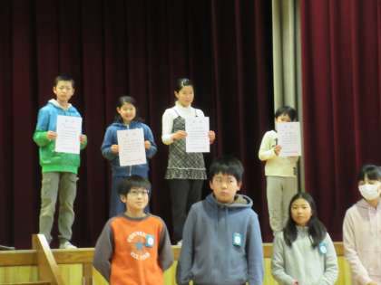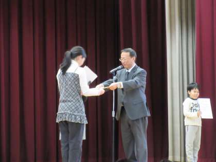全大阪幼少年美術展において、優秀な成績を収めた児童に学校長から表彰状が授与されました。特選4名、佳作及び努力賞21名が受賞しました。