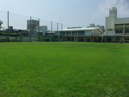 養生期間の約1か月もの間子どもたちが運動場での活動を我慢してくれたおかげで、深江小学校の運動場は青々としたふわふわの芝生の絨毯に生まれ変わりました。