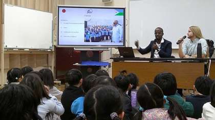 JICA(国際協力機構)の取組でアフリカのジブチから日本の大学で学ぶ方に来ていただき、国の様々な文化についてお話を伺いました。