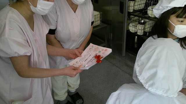 給食週間には学級でまとめた給食調理員さんへの感謝のお手紙を給食調理員さんに届けています。