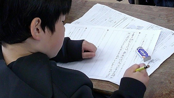 しっかり文章を読んで、ワークシートに自分の考えをまとめます。
