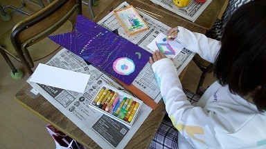 それぞれいろいろな色や模様を工夫して自分だけのこいのぼりを作っています。