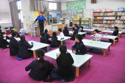 右の写真は図書委員会でお昼の図書室の開放当番の学級を決めています。それぞれの委員会が学校を楽しくしようと6年生を中心に張り切って活動しています。