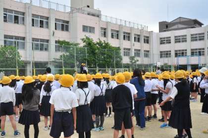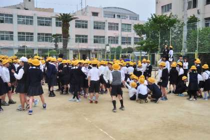 今年度はじめての児童集会です。「小学校に行こうよ」というゲームで、最後に司会者が言った言葉の文字数の人数を集めるゲームです。6年生の先生から「6年だけのグループはなし」という声がかかりました。6年生の皆さんは低学年のみんなと一緒に楽しむことができましたか?